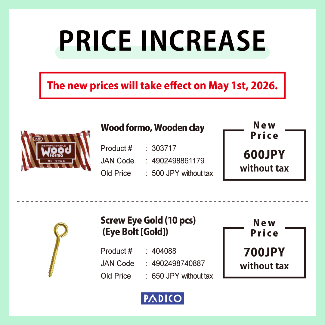 We regret to inform you that we will be increasing the prices of the following products, including those that were increased last spring in 2026.