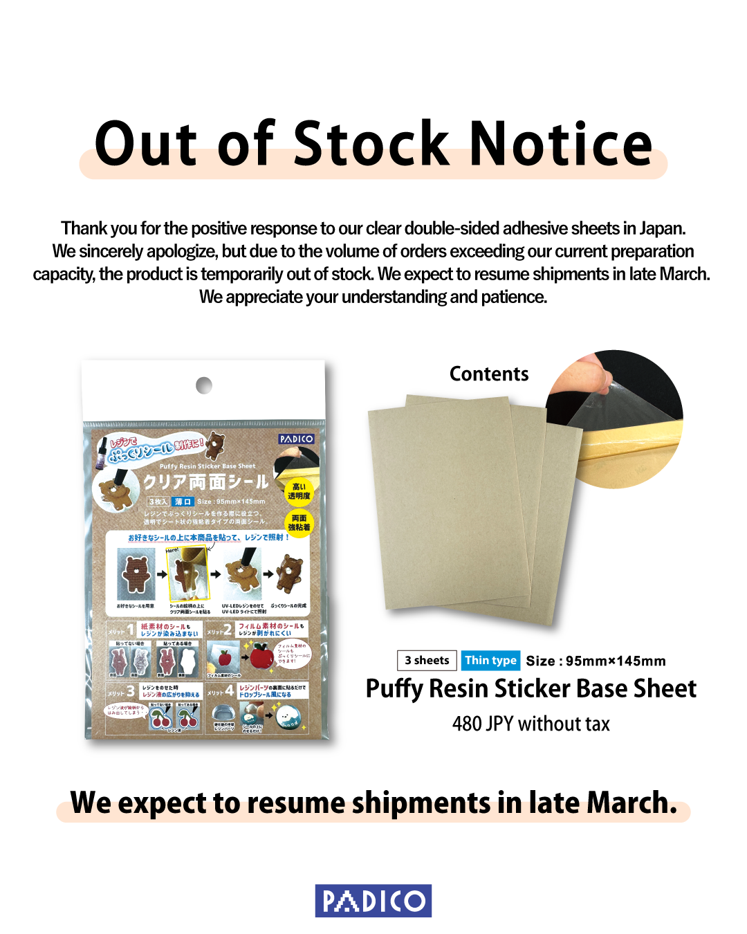 Thank you for the positive response to our clear double-sided adhesive sheets in Japan.