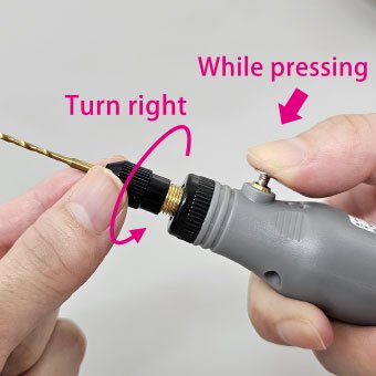 While gently pressing the shaft-lock button, turn the chuck in the loosening direction to loosen it.