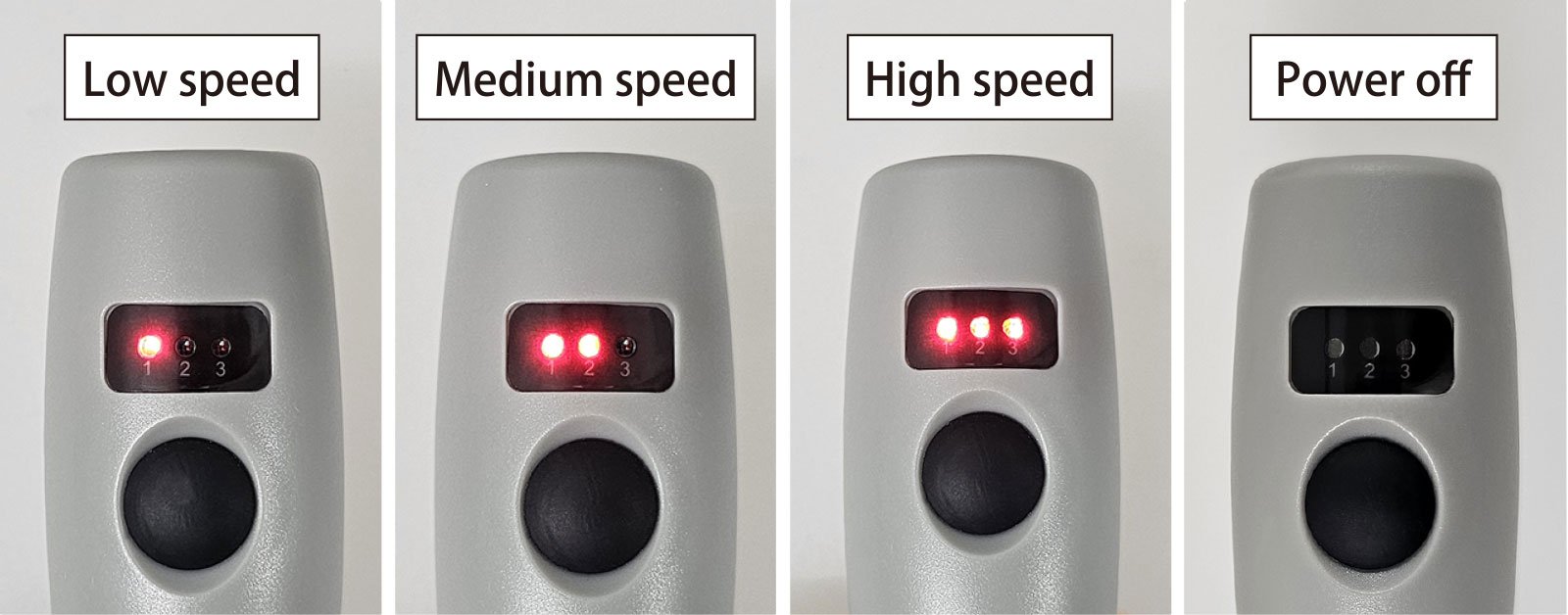 Each press of th switch cycles through the modes in the following order: Low speccd - Medium speed - High speed - Power off.