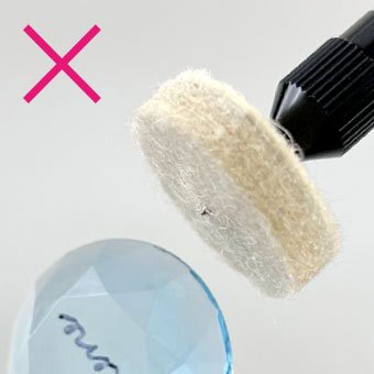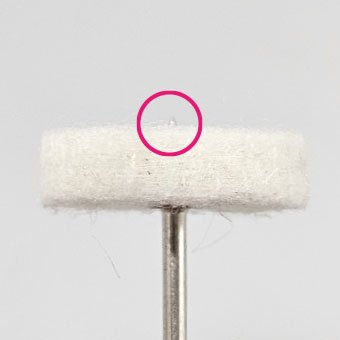 For functional reasons, the screw on the mandrel may stick out beyond the felt. When polishing, be careful of the screw tip and polish only with the side surface of the felt wheel.