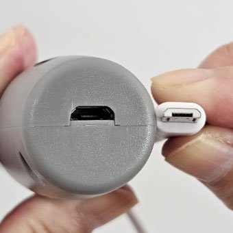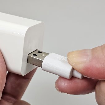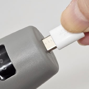 Connect the USB cable to a commercially available USB power adapter (DC5V ≒ 1A).