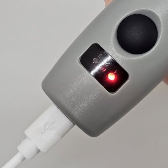 When charging is complete, the indicator turns green. Unplug the USB cable.