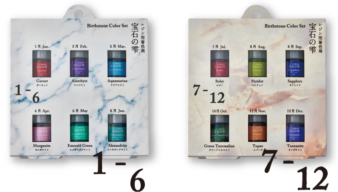 カラーレジンを2色作ります。着色剤 宝石の雫<ホワイト>を混ぜると、文字の色が見やすくなります。