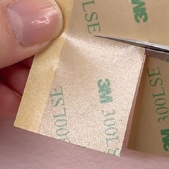 ⑤の土台の粘着の上に、④をはくり紙面が上に来る向きで貼ります。そして、はくり紙をはがします。