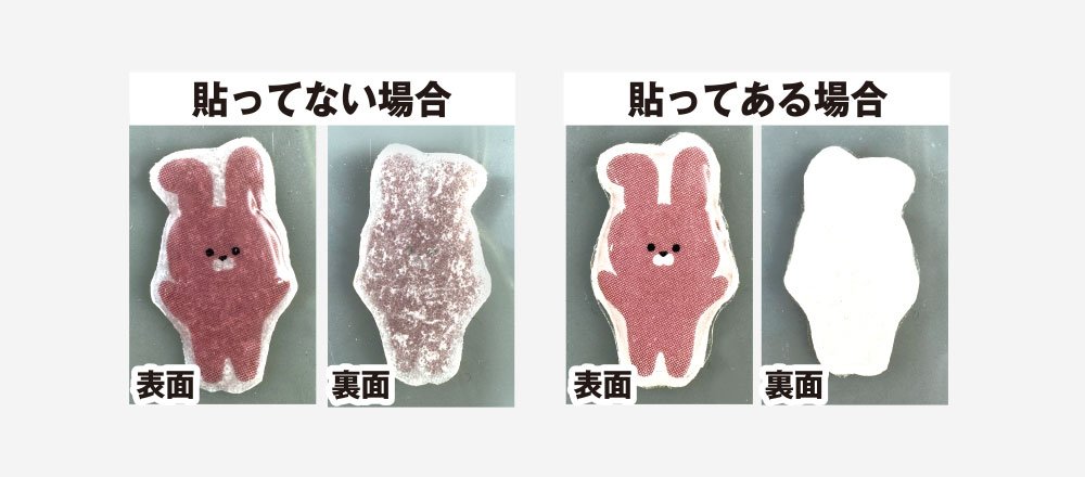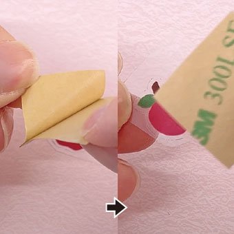 クリア両面シールの片面の〈はくり紙〉をはがし、①のシールの絵柄の上にしっかりと貼ります。